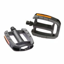 Pédales de remplacement pour vélos hybrides. Faites de résine, elles possèdent une surface adhérente pour une meilleure traction en pédalant, avec des axes en acier durables.