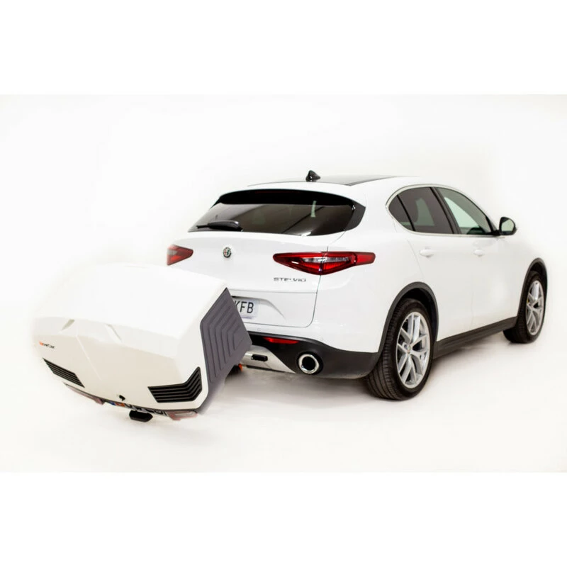 Son grand avantage est que vous pouvez le rabattre pour accéder au coffre du véhicule grâce à une poignée qui actionne son inclinaison. Ce produit est également équipé d’un système de fermeture à clé pour sécuriser vos objets, de feux LED avec clignotants progressifs dynamiques et des roues intégrées pour un transport facile lorsque la TowBox doit être déplacée manuellement.