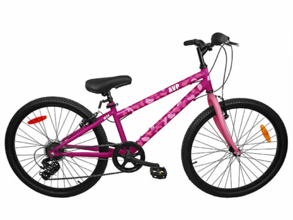 Le AVP M24 est le parfait choix pour les jeunes cyclistes plus avancés. Il possède un cadre en acier durable, des freins en V avec leviers à main et une transmission Shimano 3×7 vitesses qui offre une gramme gamme de vitesses, parfaite pour les plus longues sorties. Le M24 est parfait pour les route pavées, les pistes cyclables et le gravier.