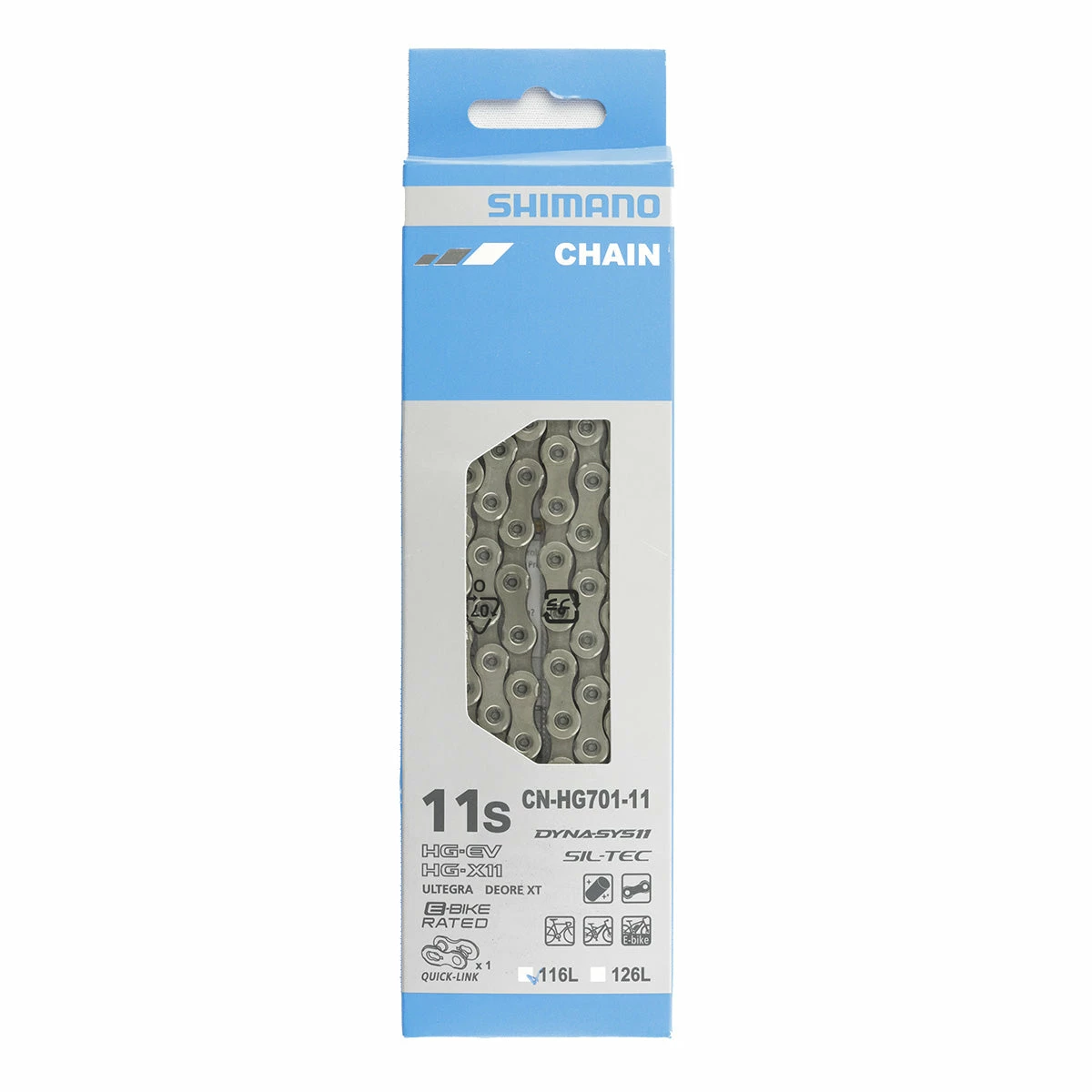 La Chaîne CN-HG701-11 est directionnelle et comporte un traitement SIL-TEC sur la plaque intérieure et la plaque extérieure pour une durabilité accrue. Grâce à sa conception renforcée, il est compatible avec les modes 11 vitesses route, VTT et E-BIKES. Ultegra et Deore XT