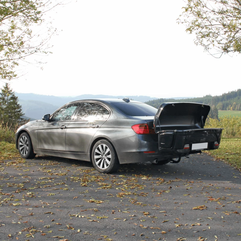 La fonction basculante permet d’avoir toujours accès au coffre du véhicule en toute circonstance même, quand le Backbox est installé sur son support de base. Ce coffre et le support de base sur lequel il est fixé permet l’ouverture intégrale des grands hayons tels que celui du VW Transporter T4, T5, T6 ou Mercedes Viano par exemple. Ce produit est également équipé d’un système de fermeture à clé pour sécuriser vos objets, lui-même verrouillable sur le véhicule.