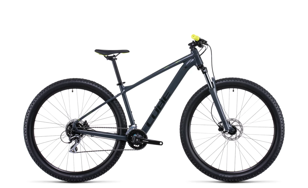 Le Cube Aim Pro est un vélo de montagne simple suspension entrée de gamme pour les cyclistes à la recherche d’un vélo de montagne entrée de gamme, ou un vélo utilitaire robuste. Fait d’Aluminium Lite il possède une fourche à suspension SR Suntour XCT 100mm et un groupe de transmission fiable Shimano 8 vitesses. Les pneus larges CUBE IMPAC Smartpac 2.25 » et freins à disques hydrauliques Tektro HD-M275 offrent une traction et une confiance peu importe le terrain ou les conditions.