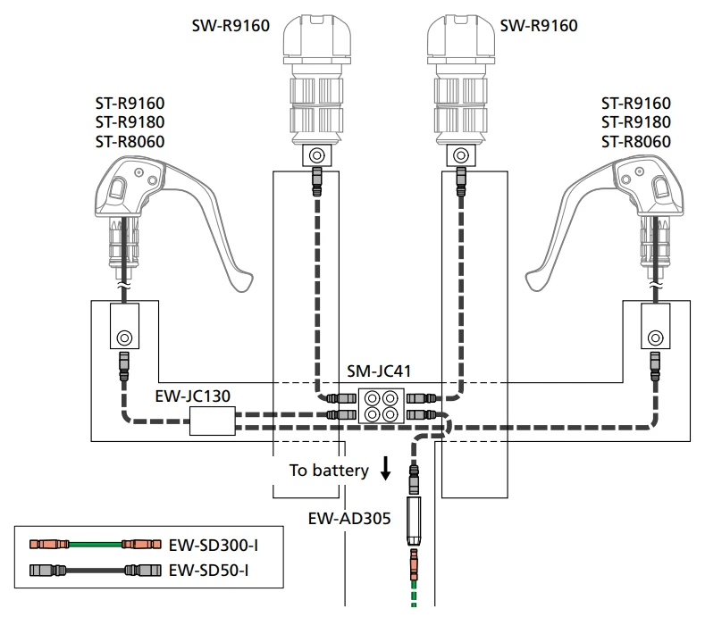 Voici le groupe qui réunit tout les composants électroniques nécessaires pour le montage d’un vélo de contre la montre en Shimano DI2 12v !