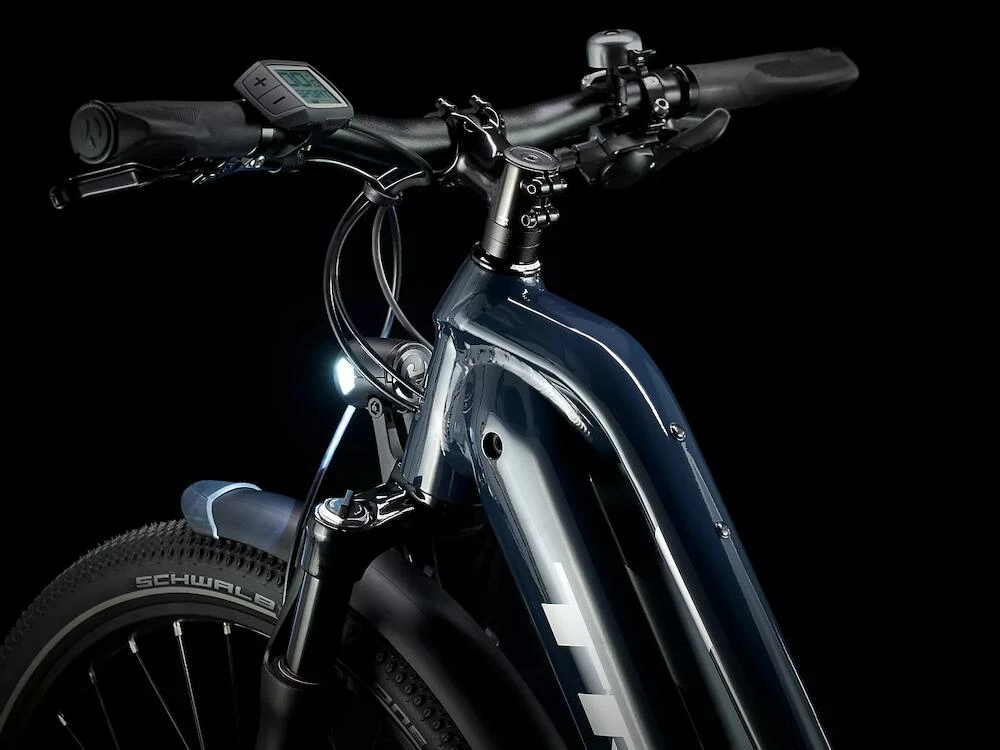 Alliant performances, confort et élégance, le Trek Allant + 7 est le vélo électrique de navettage idéal. En effet, grâce à son puissant moteur et à ses fonctionnalités bien pensées, laisser sa voiture à la maison n’a jamais été aussi facile. Il est idéal pour vos déplacements quotidiens ainsi que vos sorties du week-end. Grâce au système d’assistance au pédalage, vous aurez toute l’aide dont vous aurez besoin pendant ces montées difficiles pour avoir assez d’énergie pour terminer votre randonnée. C’est le partenaire idéal de chaque roadtrip vous permettant de découvrir la ville à votre propre vitesse, jusqu’à 32 km / h. La géométrie rabaissée permet de monter et de descendre du vélo en pleine confiance.
