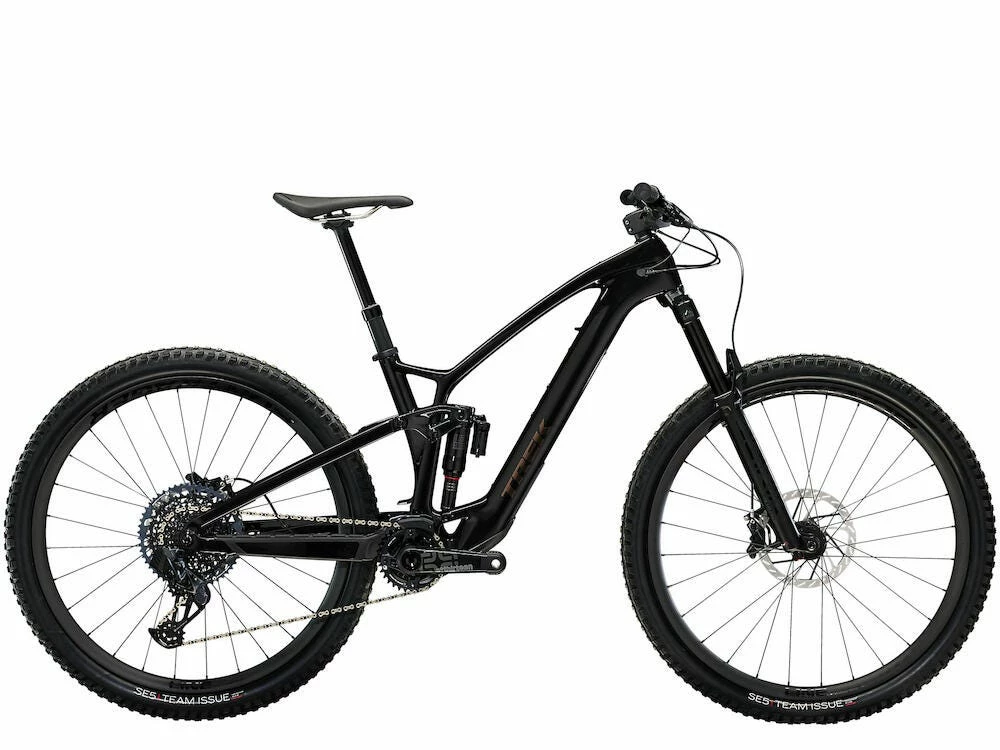 Le montage Fuel EXe 9.8 XT vient muni d’un groupe de transmission électronique Sram GX AXS 12 vitesses avec des freins à disques hydrauliques Sram Code R à 4-pistons et un système de suspension RockShox Lyrik Select+/RockShox Super Deluxe Select+ RT. Il vient également monté avec des roues Bontrager Line Elite 30 et un guidon/potence intégré Bontrager RSL.
