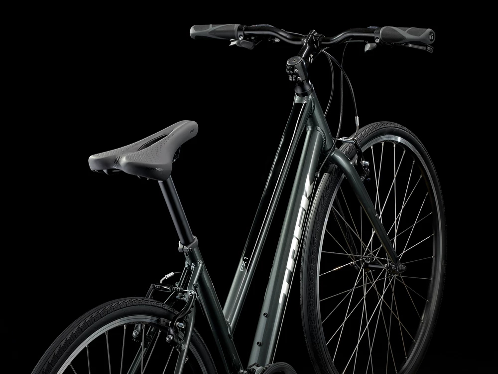 Le FX 1 de Trek est un vélo hybride polyvalent d’un excellent rapport qualité-prix. Il est doté d’un cadre en aluminium léger à 21 vitesses qui garantit un rapport optimal pour votre terrain. Il est monté sur de solides roues à double paroi, ce qui le rend durable et résistant. De plus, il est facile d’y installé des supports, des garde-boues, des lumières, des cyclomètres, une béquille, et plus encore. De plus, ses larges pneus permettent de rouler facilement, que ce soit sur des pistes cyclables ou des sentiers plus fermes. Le cadre possède un tube horizontal rabaissé, idéal pour ceux qui préfèrent ne pas l’enjamber.