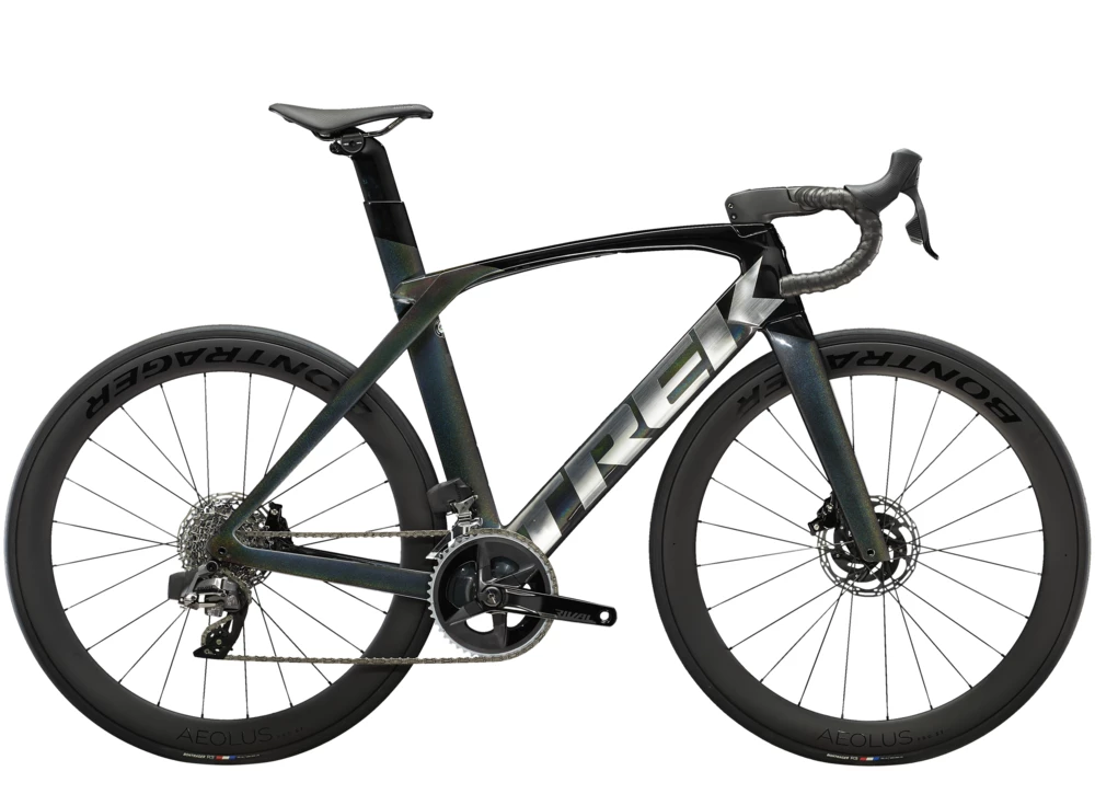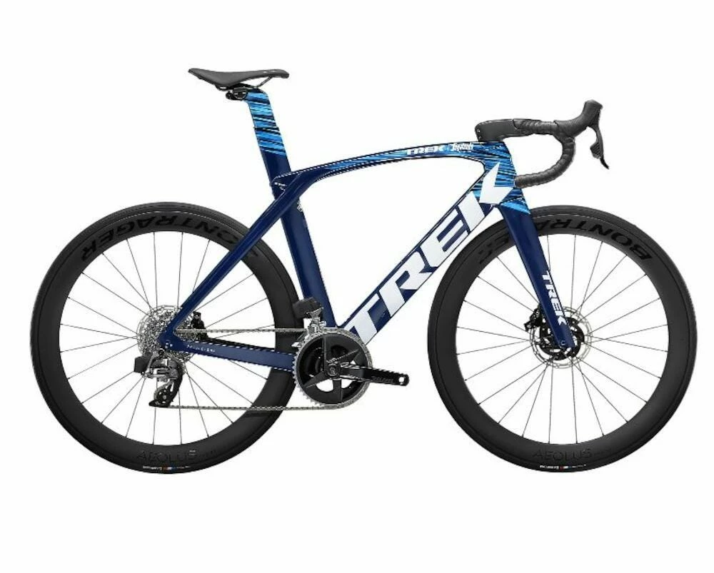 Il est équipé de roues en carbone Bontrager Aeolus Pro 51. Ces roues sont légères, rigides avec un profil épais pour une bonne performance aérodynamique et une bonne tenue en vents latéraux.